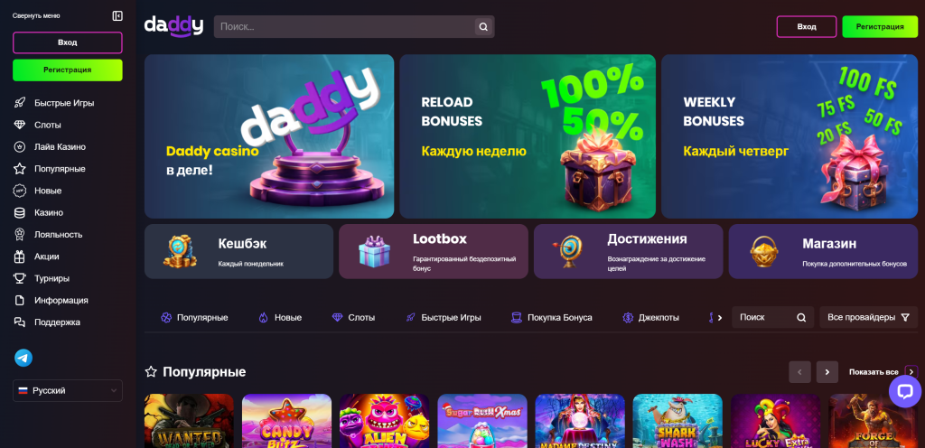 Топовое казино Daddy – официальный сайт и зеркало для игры